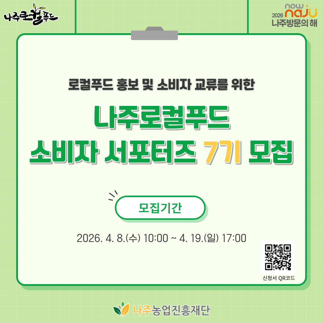- 이전글 : 나주로컬푸드 소비자 서포터즈 6기 모집