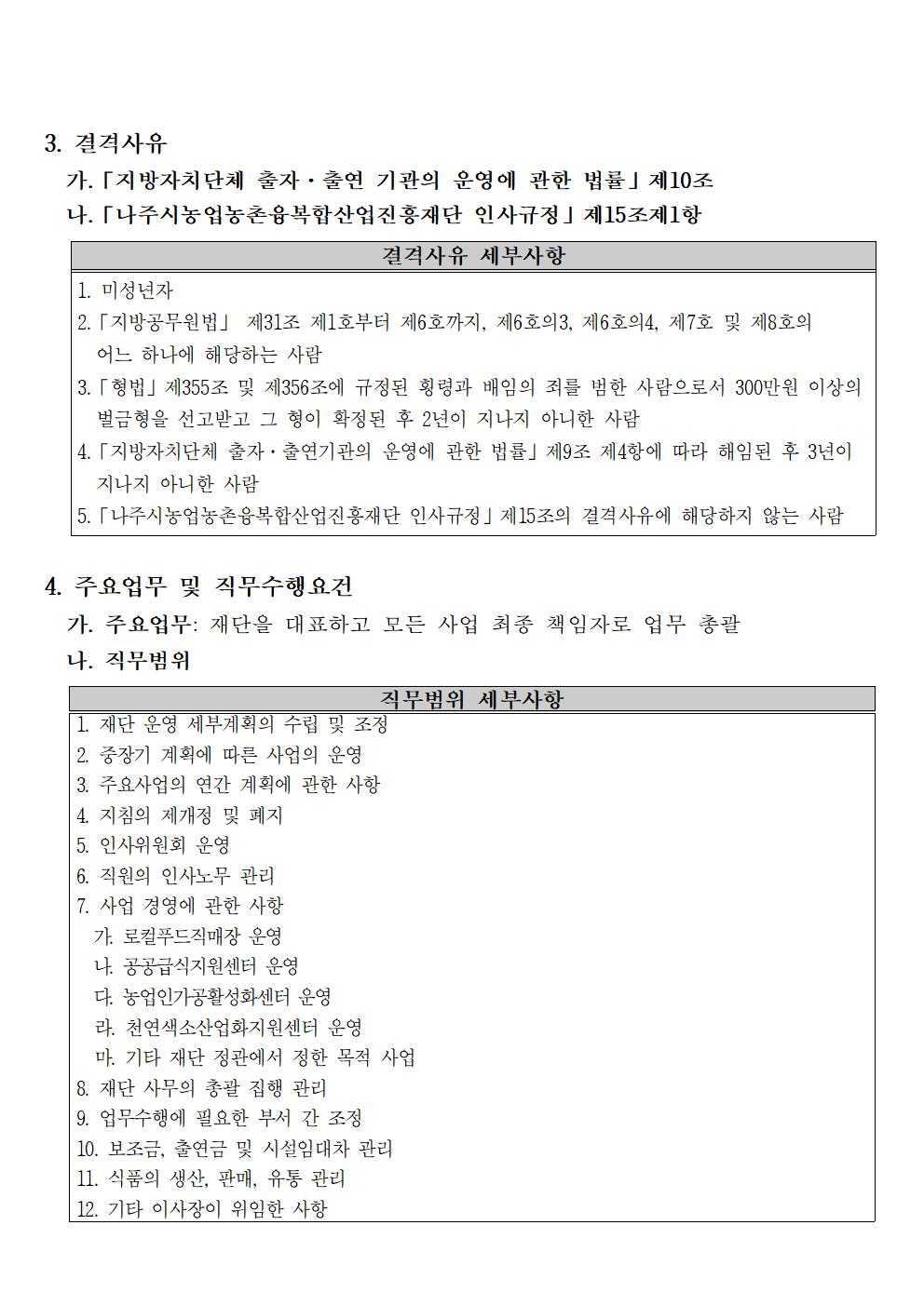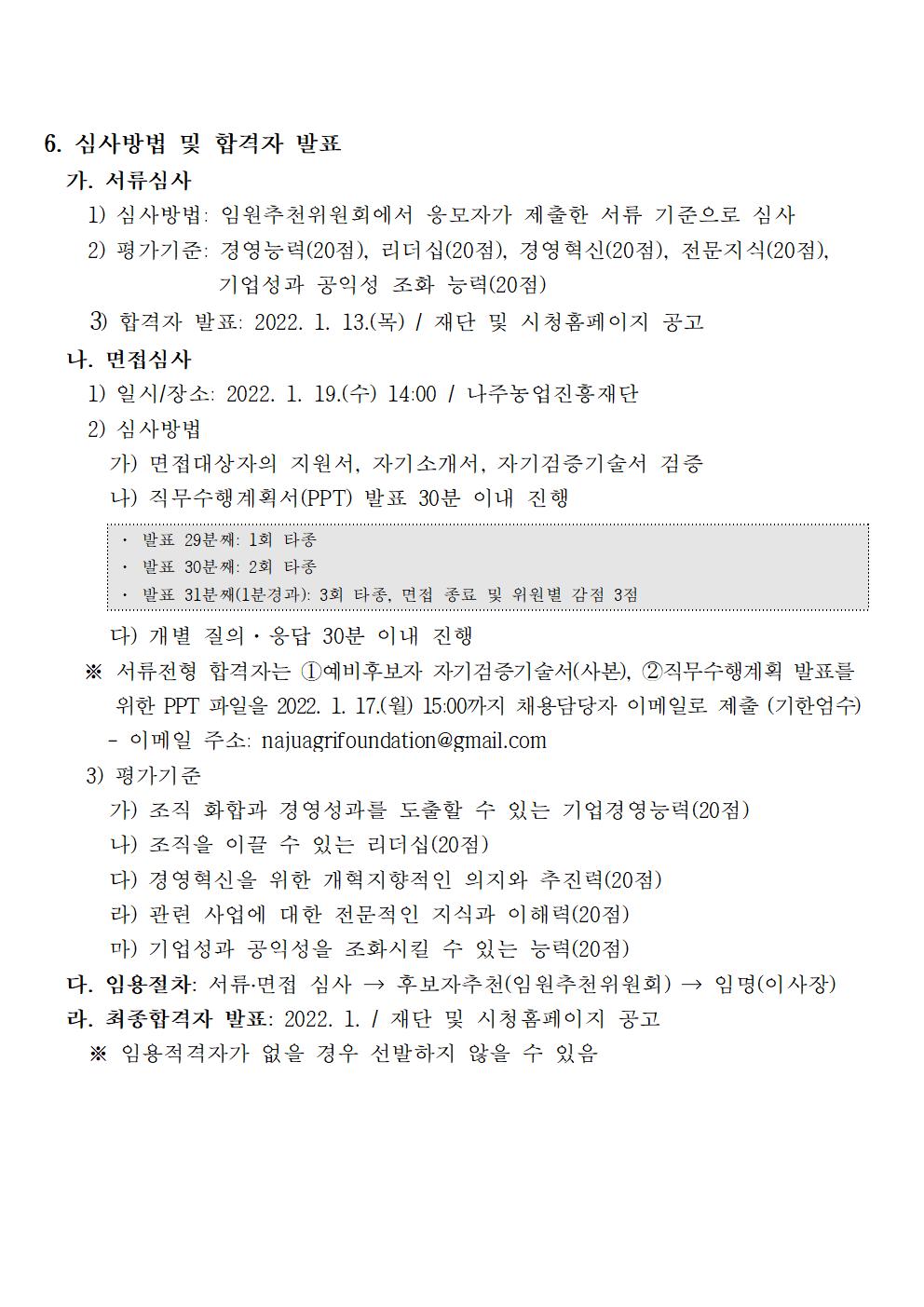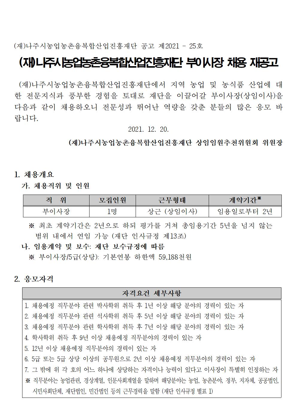 (재)나주시농업농촌융복합산업진흥재단 부이사장 채용 재공고 2021.12.20 09:53 File 부이사장 채용 붙임서류(양식).hwp (51.5 KB) 다음글 : 나주농업진흥재단 농촌협약지원팀 직원채용 재공고 이전글 : 나주농업진흥재단 기획조정실 기간제근로자 채용 공고