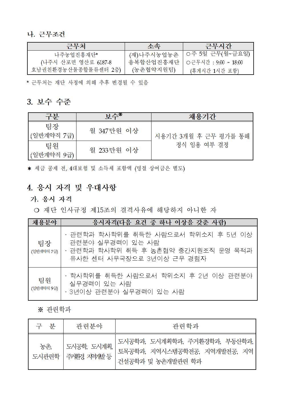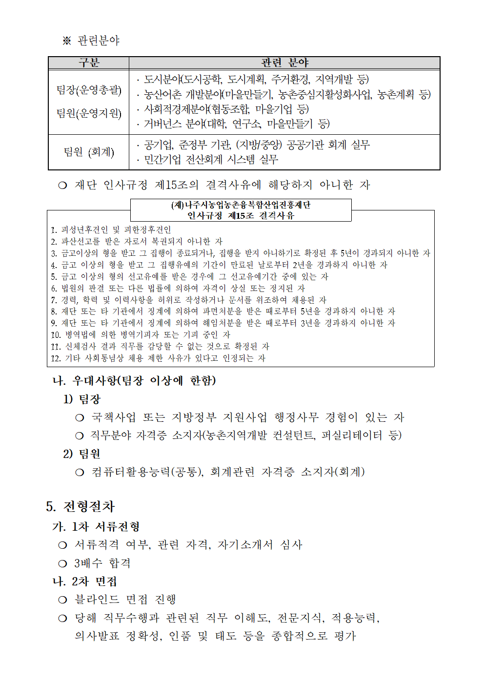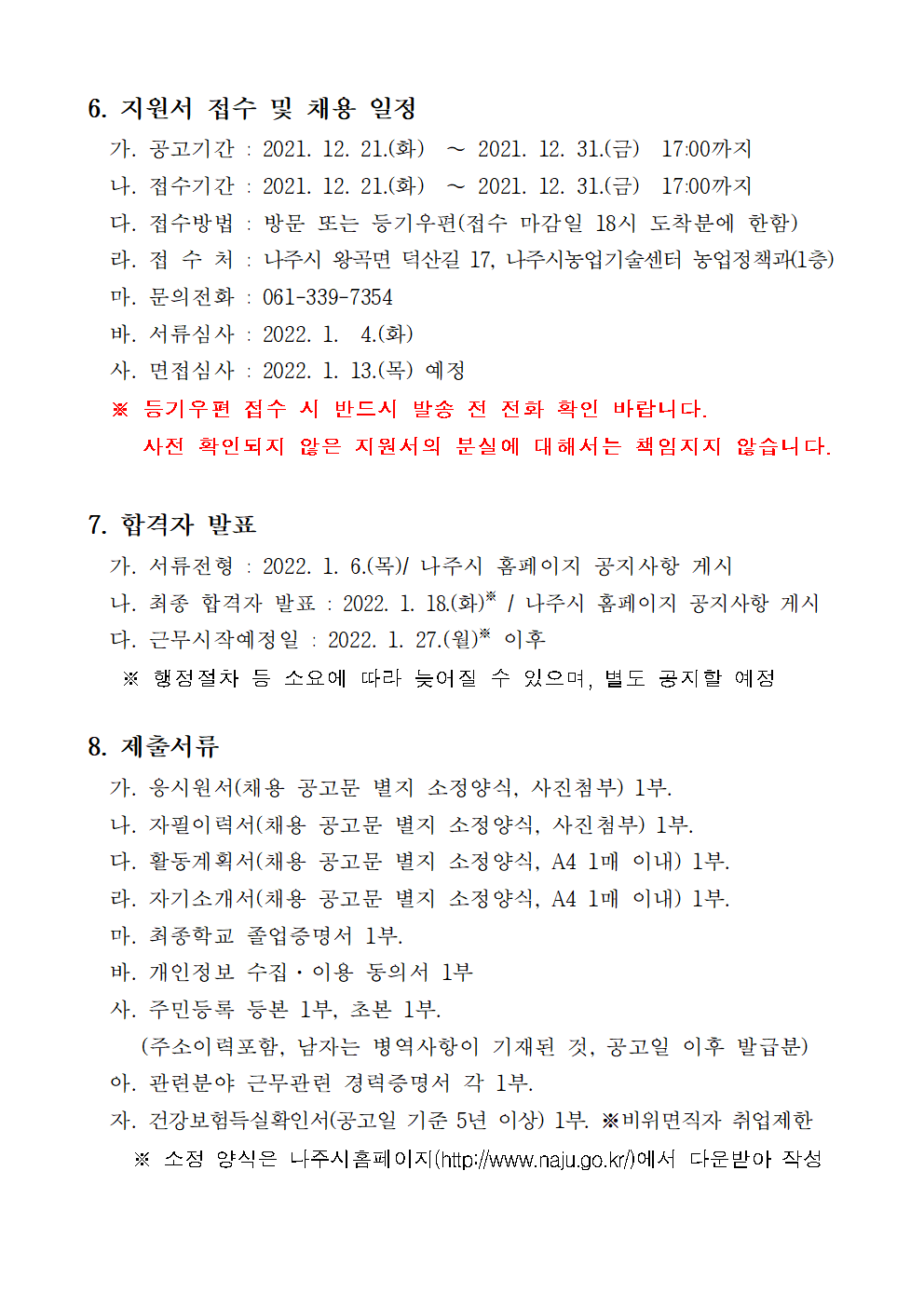 나주농업진흥재단 농촌협약지원팀 직원채용 재공고 2021.12.21 16:20 File 채용 붙임서류.hwp (26.5 KB) 다음글 : 나주농업진흥재단 기획조정실 기간제근로자 채용 재공고 이전글 : (재)나주시농업농촌융복합산업진흥재단 부이사장 채용 재공고