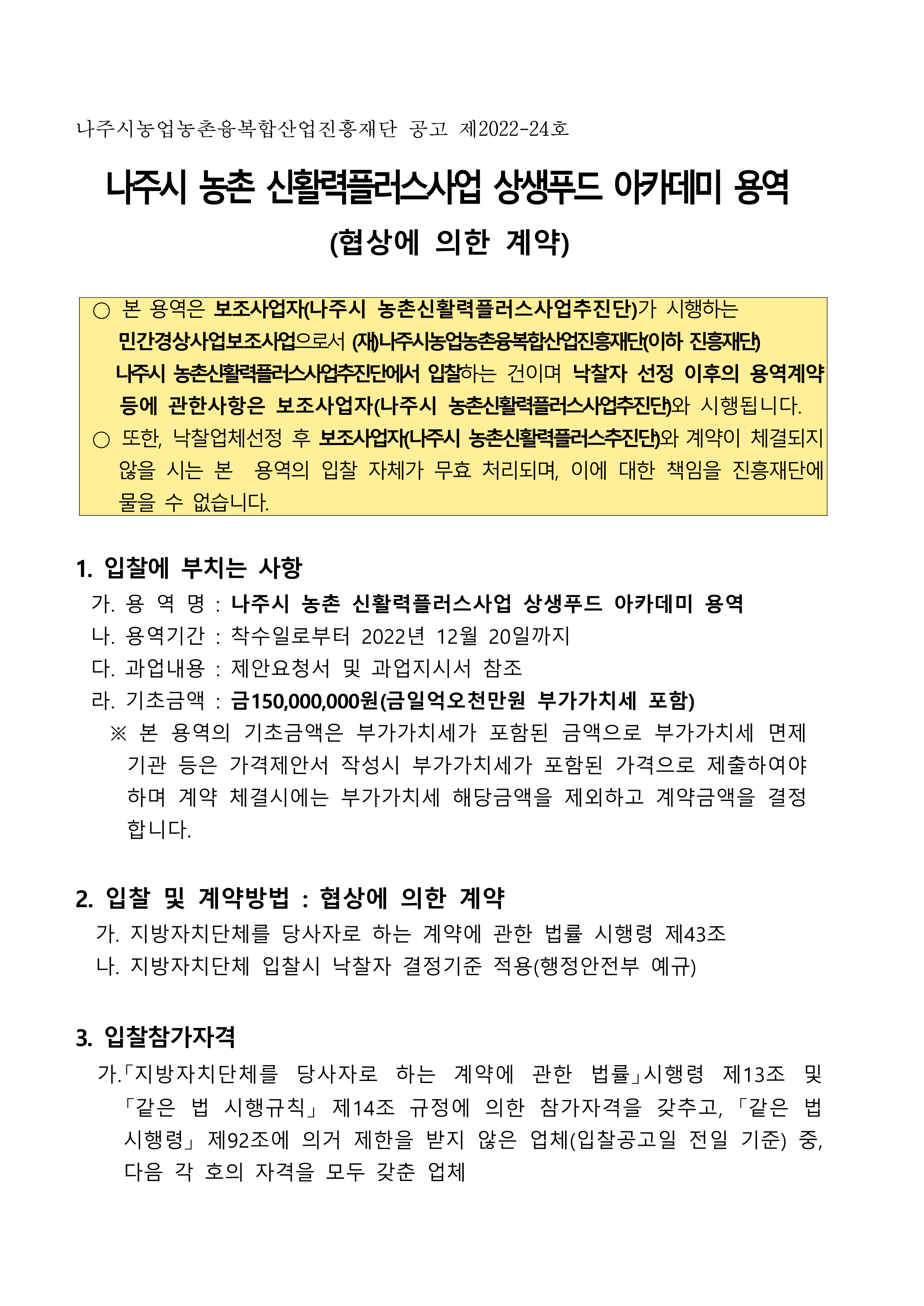 1. 용 역 명 : 『나주시 농촌신활력플러스사업』2022년 상생푸드 아카데미 용역