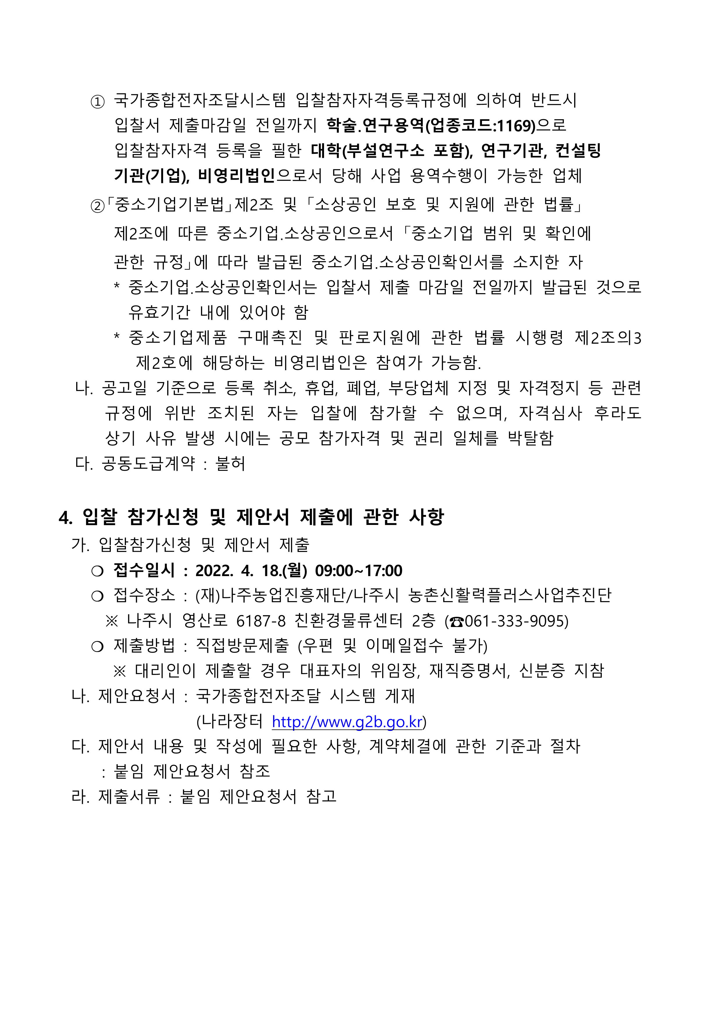 6. 입찰등록 및 제안서 제출일 : 222. 4. 18.(월)