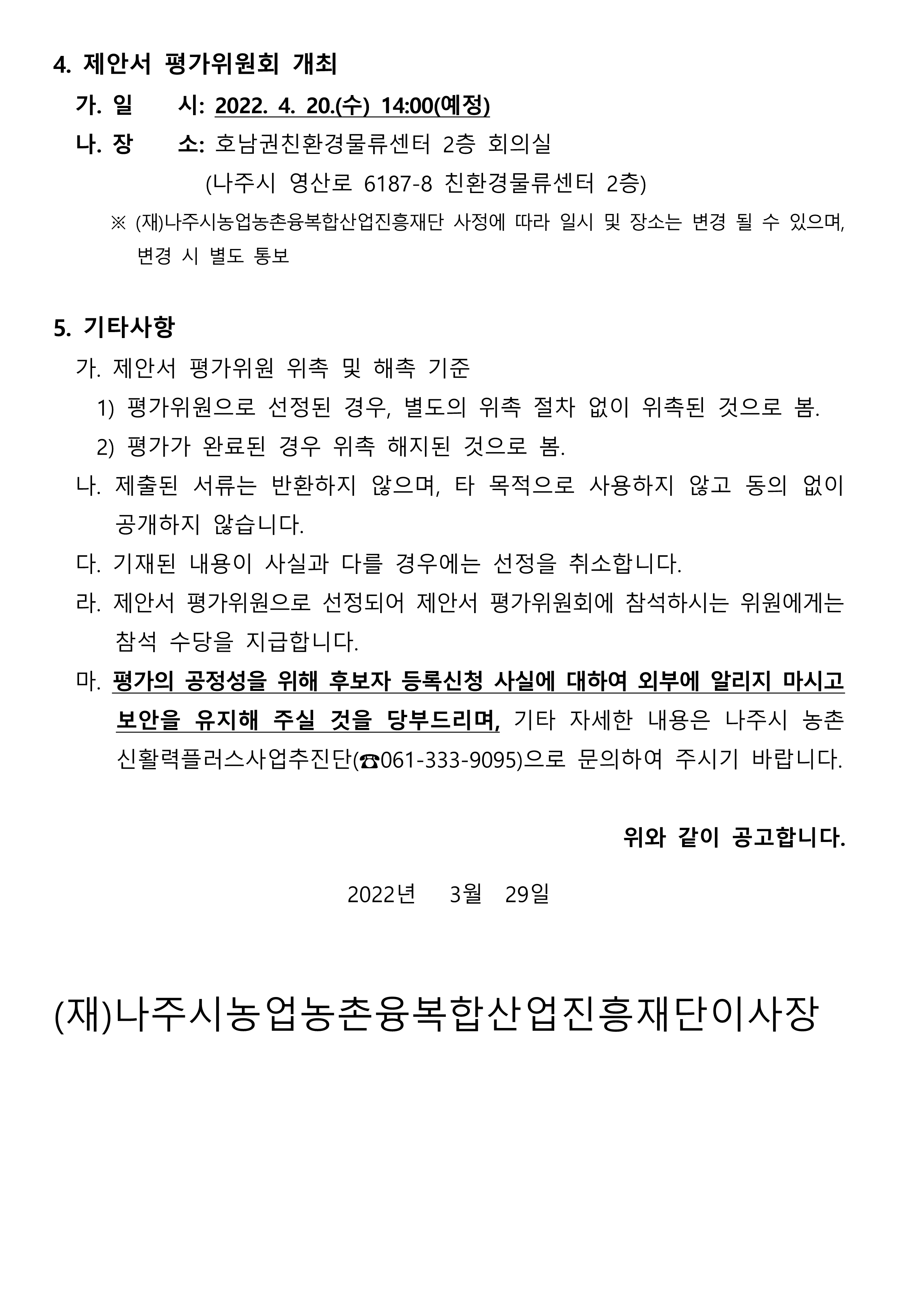 6. 평가일시 : 2022. 4. 20.(수) 14:00(예정)