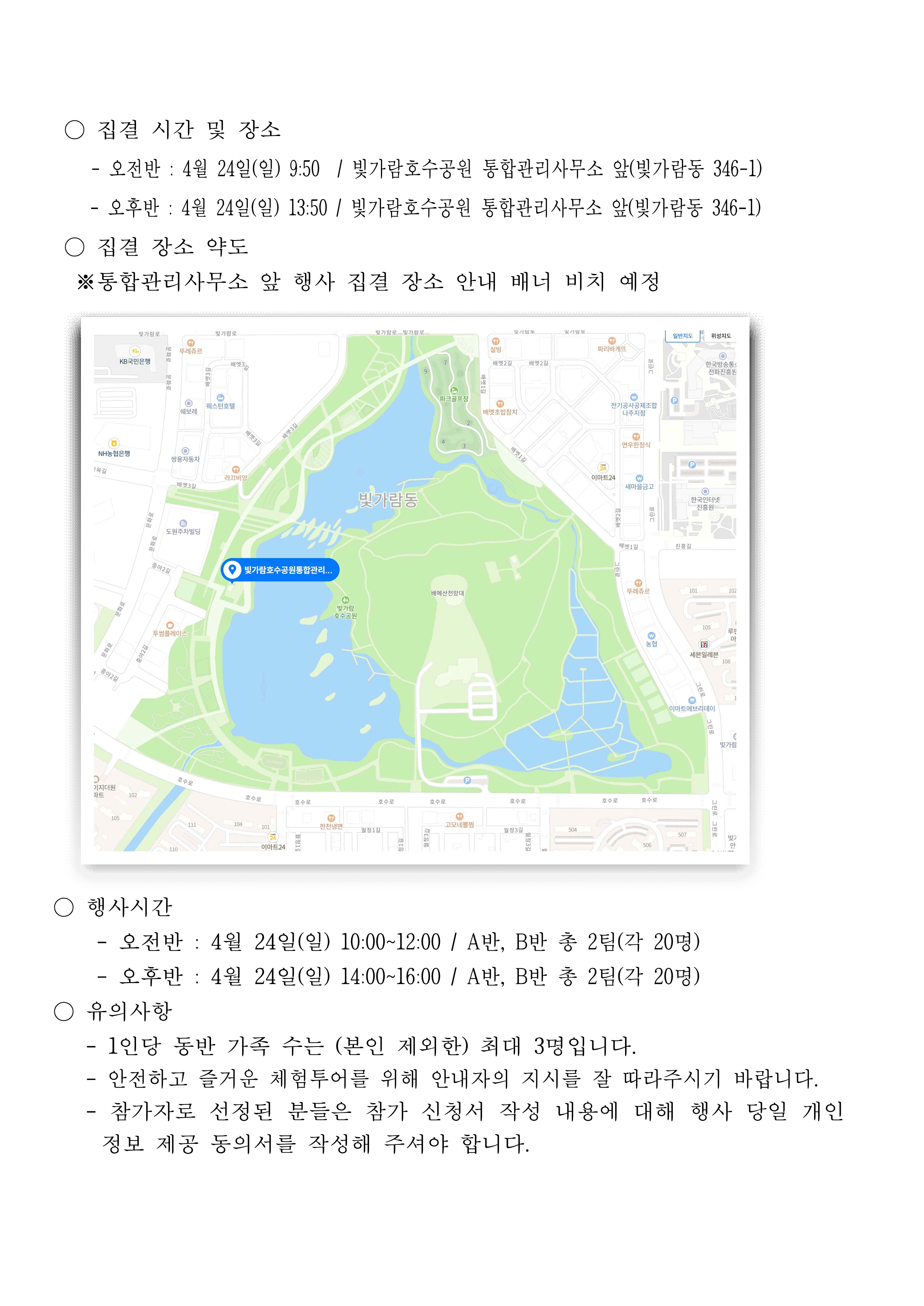 - 4월 24일(일)에 열리는 빛가람 호수공원 생태놀이 프로그램 참가자 18일부터 모집