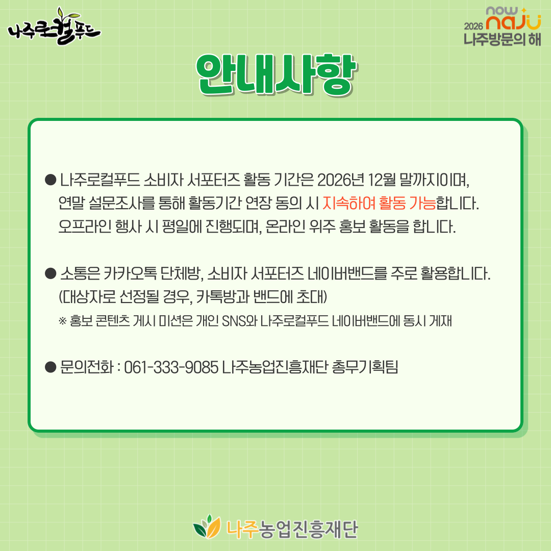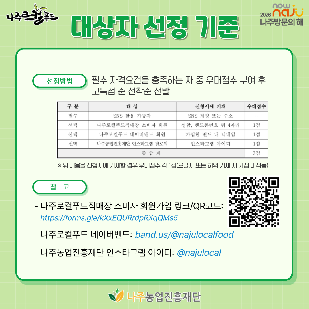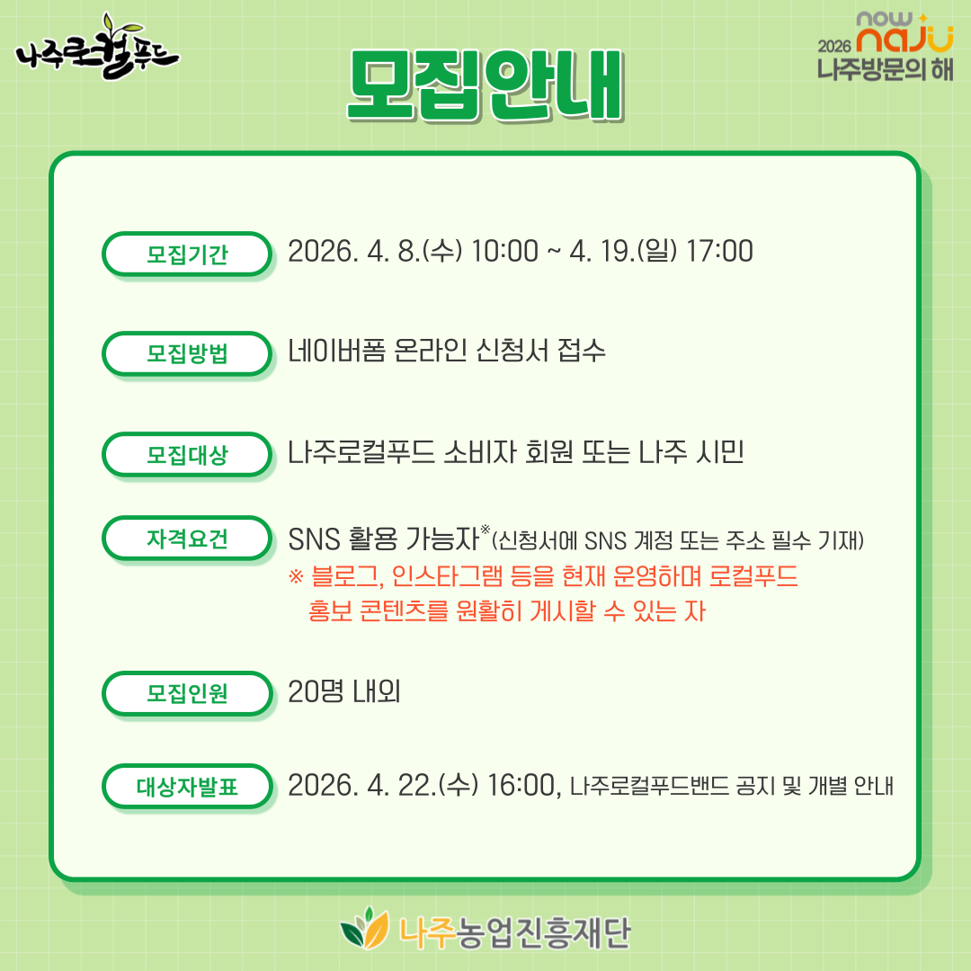 ●대상자 발표 : 2026. 4. 22.(수) 16:00, 나주로컬푸드밴드 공지 및 개별 안내