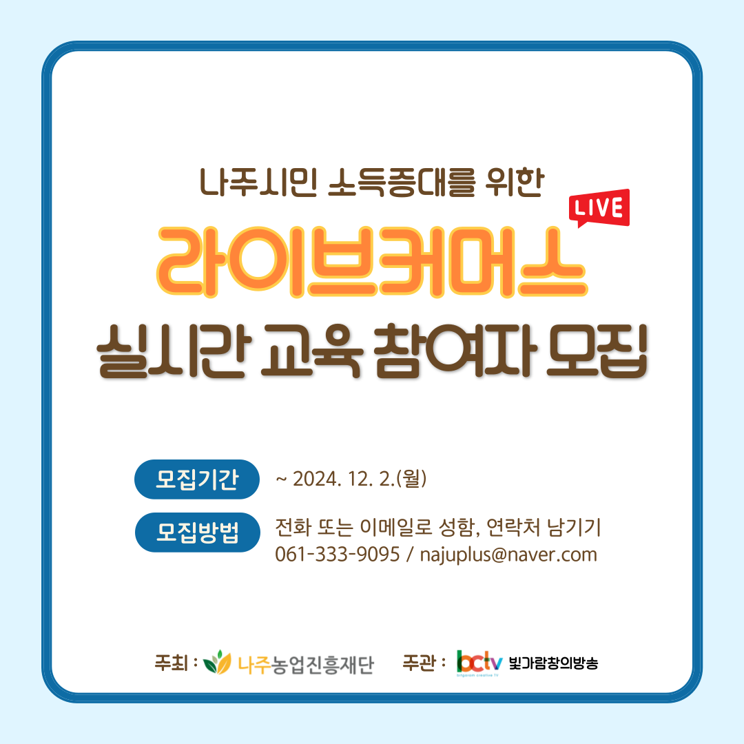 나주시 농촌신활력플러스 「라이브커머스 실시간교육」 참여자 모집